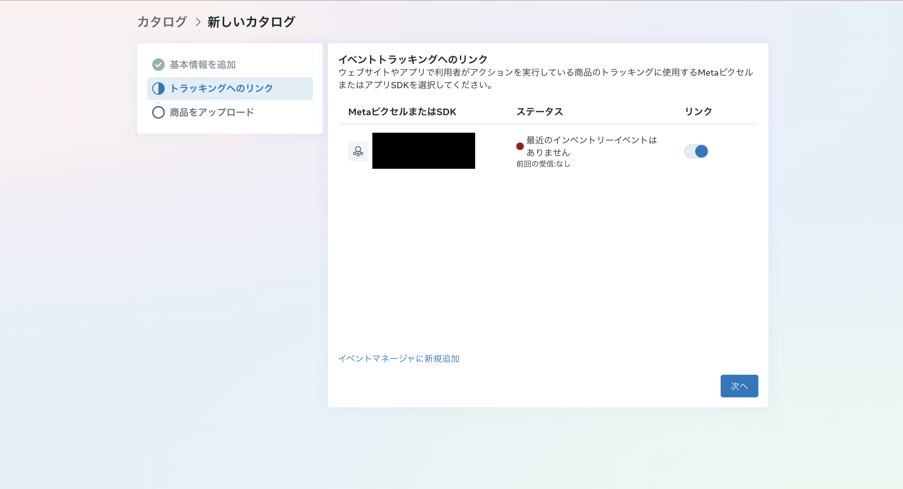 導入には、Meta(Facebook)の管理ツールである「コマースマネージャ」の設定が必要です。以下のステップで進めましょう。