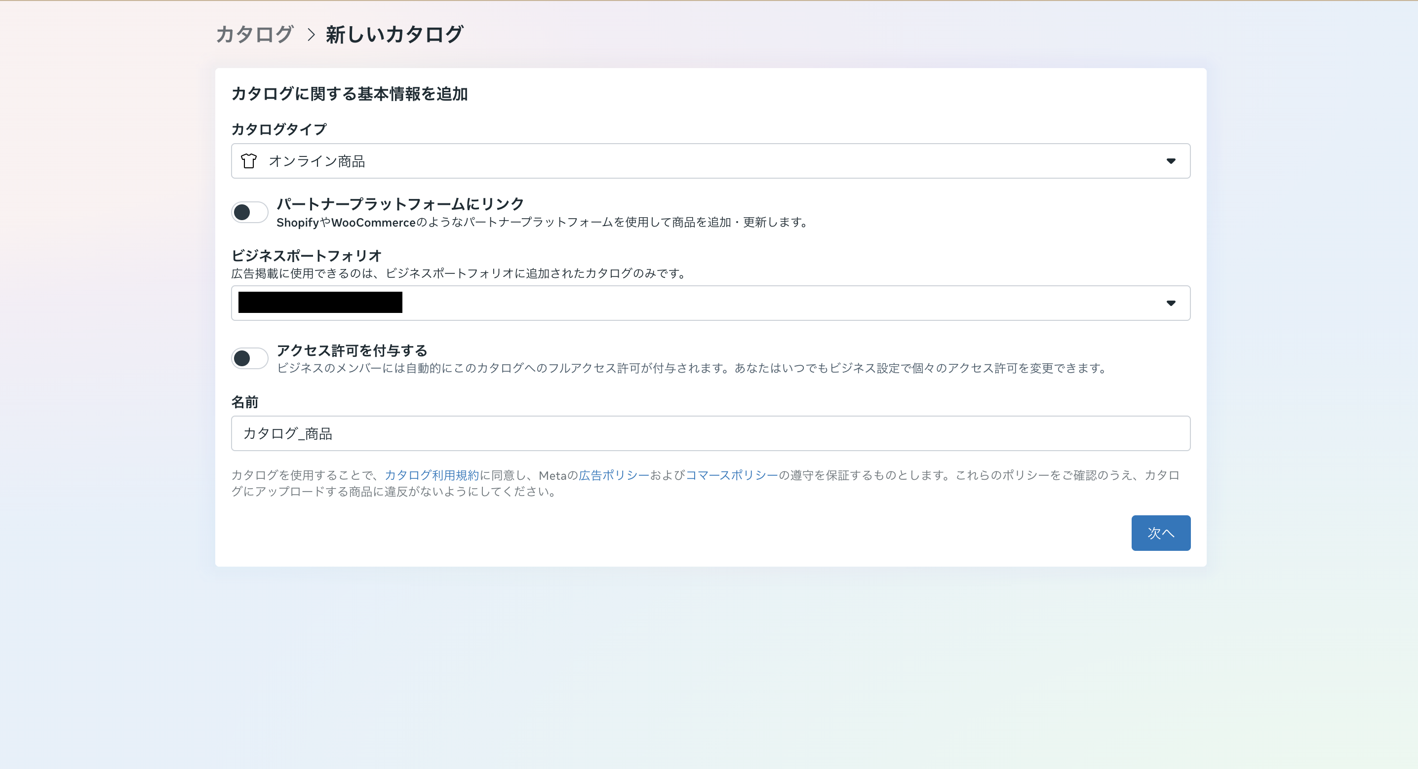 ※ 一度カタログを作成したアカウントであれば、以下のような画面から追加する形になります。
