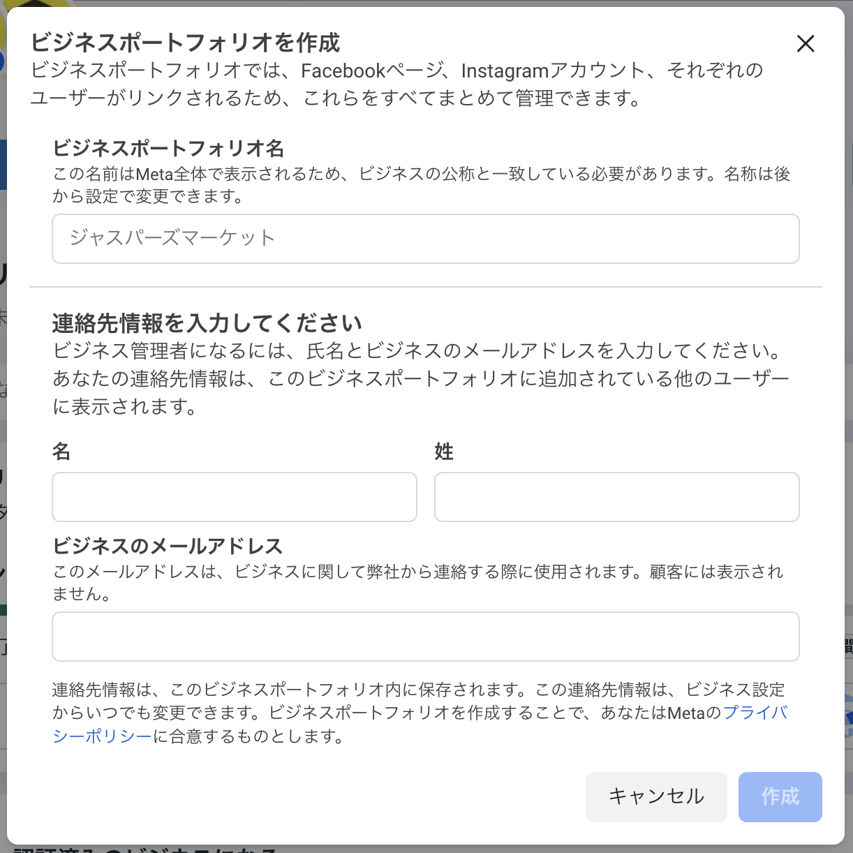 1. Meta Business Suiteでビジネスポートフォリオを作成する
